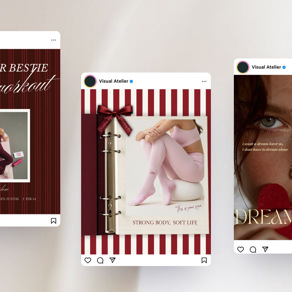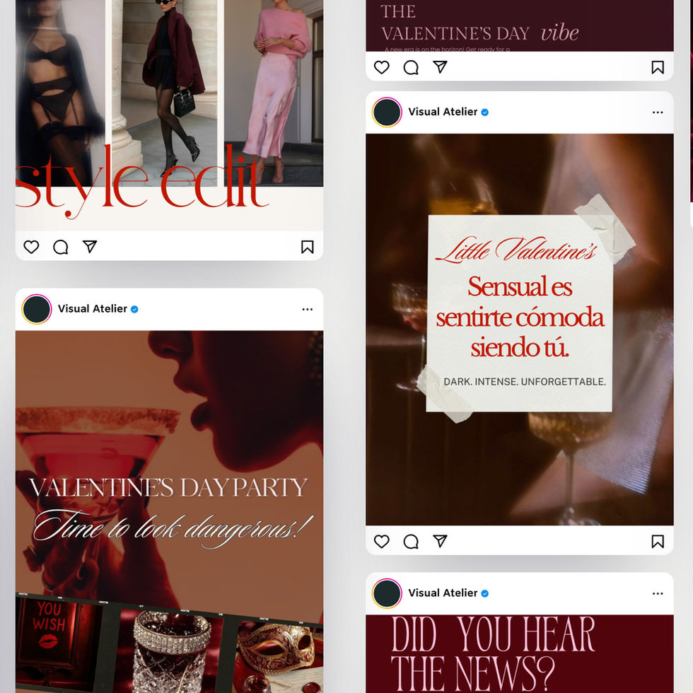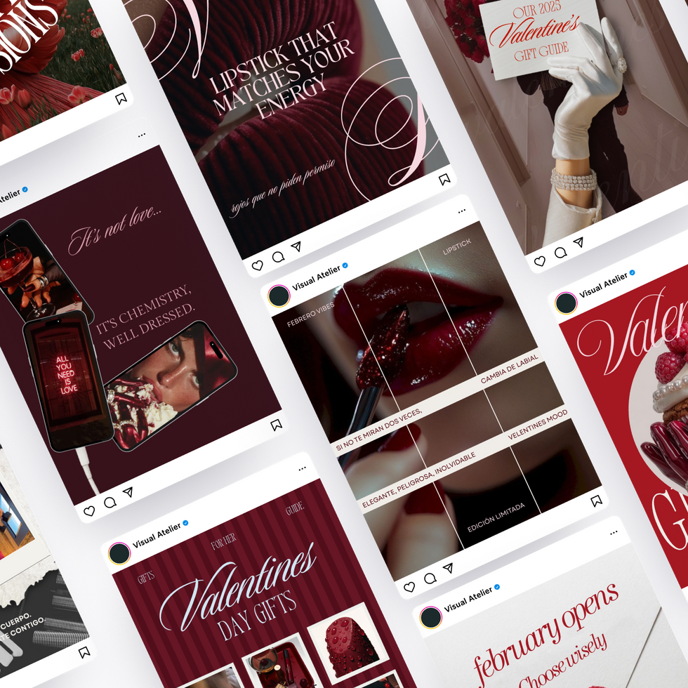 Con una estética romántica moderna, tonos intensos y composiciones cuidadas, estas plantillas permiten comunicar emociones, lanzamientos especiales y mensajes que buscan crear vínculo, no solo impacto visual.